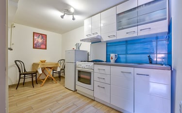Mini-loft na Šalati – mir iznad grada. Renoviran stan 45 m², 2. kat, dvorište. Blizina centra i bolnica.